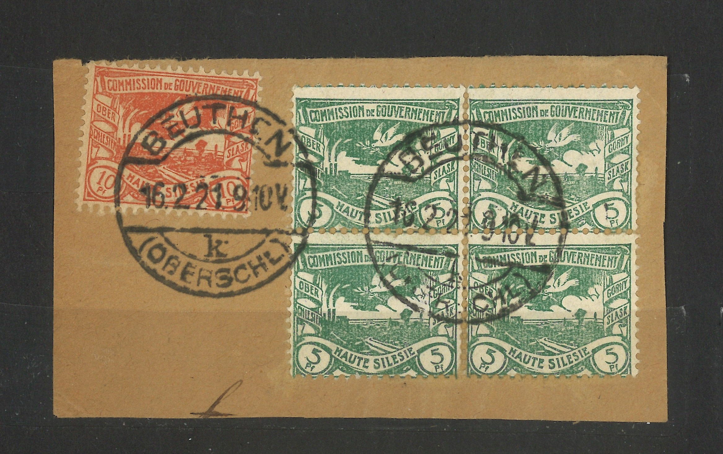 Марки на вирізці з Верхньої Сілезії - 1920 р.