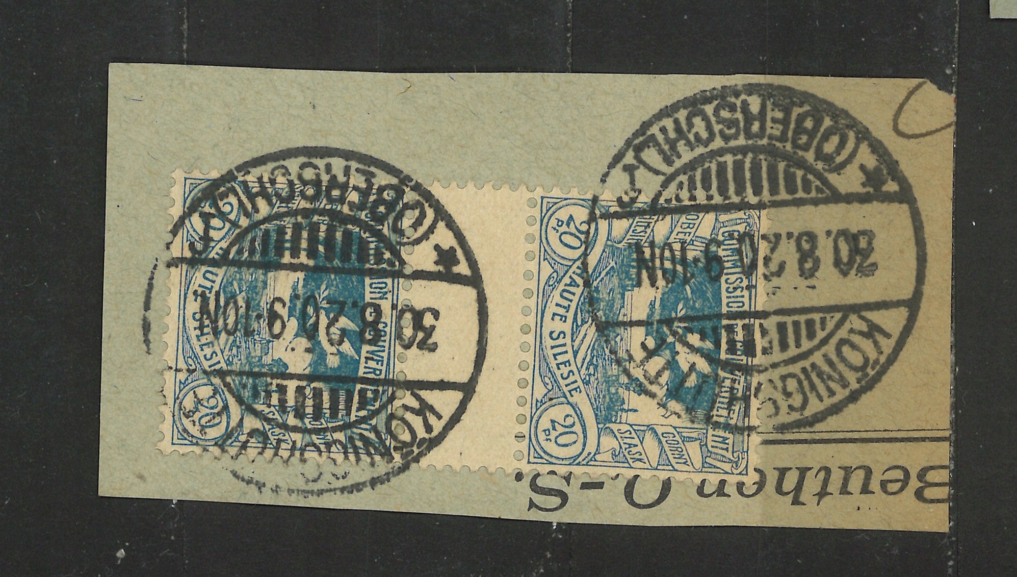 Марки на вирізці з Верхньої Сілезії - 1920 р.