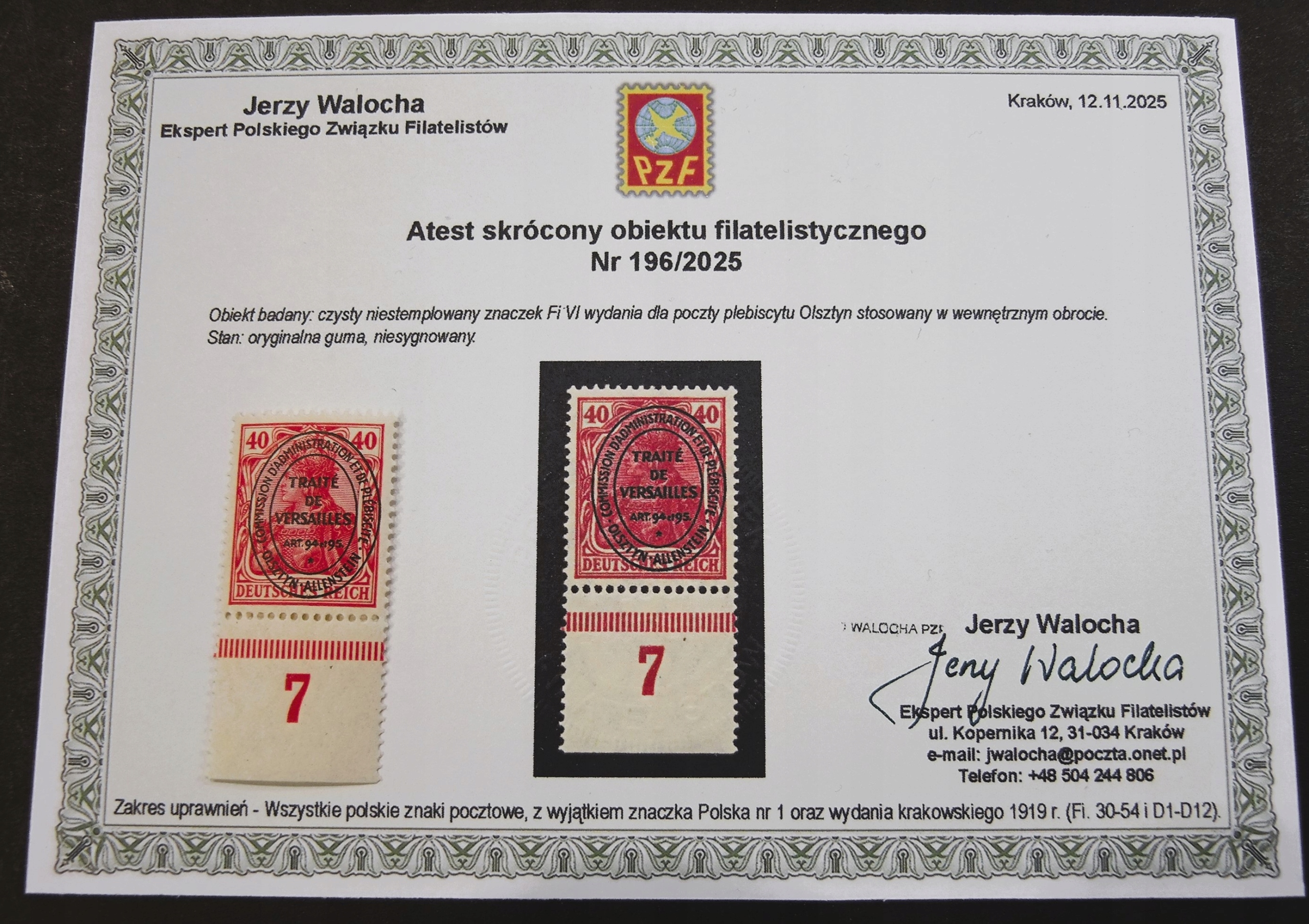 PLEBISCITES OLSZTYN - Fi VI** СЕРТИФІКАТ - ОФІС - НЕ ПРИЙНЯТНО