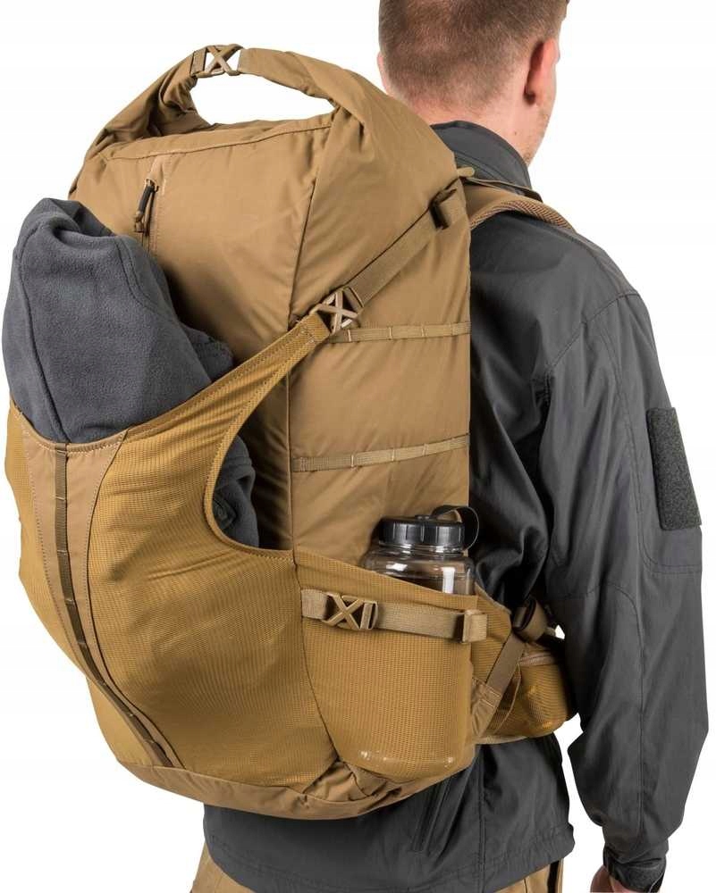 рюкзак Helikon Summit® 40L (PL-SMT-CD-02) Це рішення будь-якої проблеми, яка до цього часу з'явилася в туристичних рюкзаках. Сучасні рішення Цей рюкзак дозволяє зручно носити багаж навіть під час найдовших подорожей. Останні технології та легкі матеріали в поєднанні з сучасним дизайном є гарантією успіху. Сам рюкзак був позбавлений усіх непотрібних добавок, які могли негативно вплинути на вагу рюкзака. міська камера Основна має дві точки доступу - зверху через розгорнутий димохід і з передньої частини рюкзака через блискавку. З боків рюкзака є гнучкі кишені , які можуть вмістити пляшку, додатковий одяг тощо Шолом або навіть густа зимова куртка. Зручний, профільований тазостегновий пояс має сітчасті кишені. Пришита з боків моль твердої ширини 10 мм дозволяє прикріпити більші кишені в стандарті Molle/pals