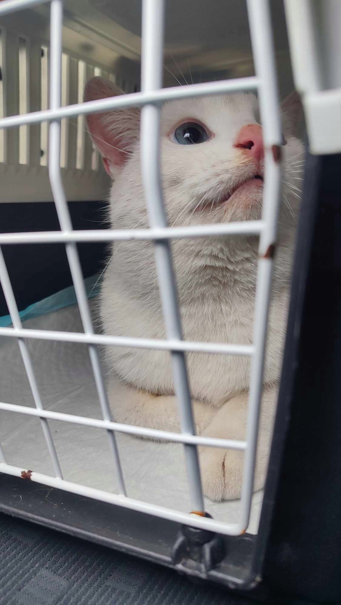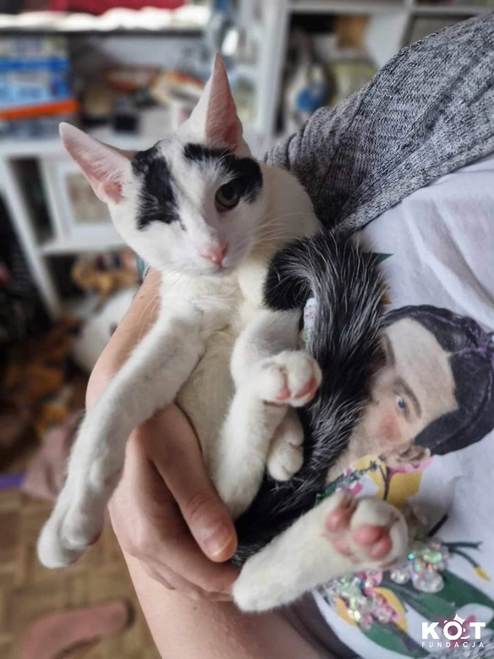 На фото нижче ви бачите Крокуса, кота, якого тимчасово госпіталізували у Влоцлавек вчора ввечері (03.11.2024)! Хлопчик ручний і дуже наляканий. Останні кілька тижнів він жив на ділянках і блукав дуже жвавою вулицею в пошуках їжі. Він ще не отримав кращих фотографій. ;-)