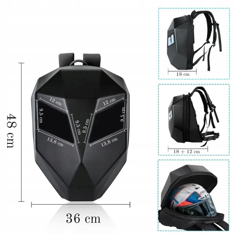 PLECAK NA MOTOR Z OCZAMI LED WODOOPORNY MOTOCYKLOWY NA KASK EKRAN BLUETOOTH