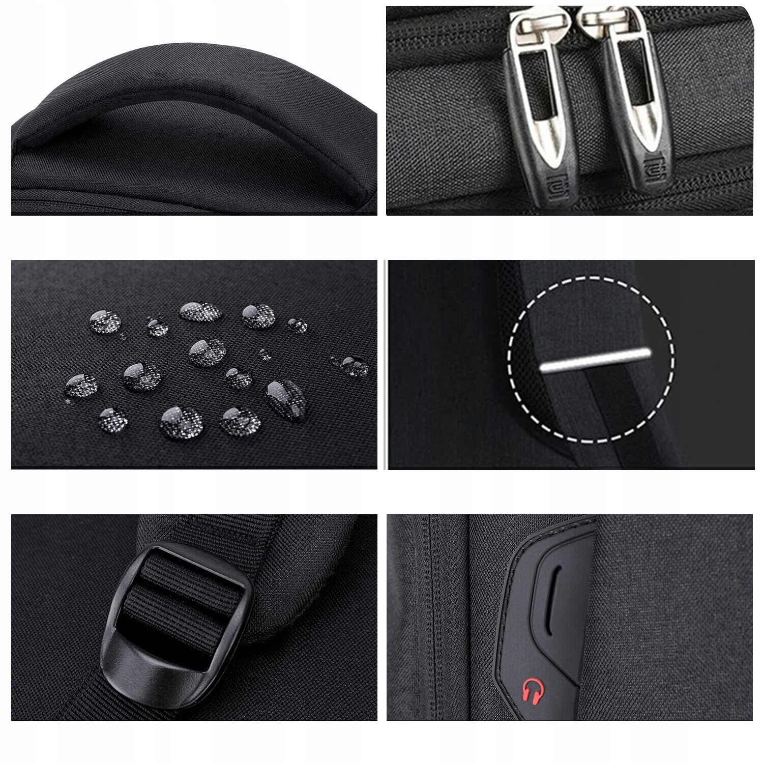 - 🌄 - вбудований із USB-портом для зарядки та роз’ємом для навушників. Під час зарядки до сумки можна підключити павербанк, щоб зручно користуватися мобільним телефоном. Ви можете слухати музику на телефоні в рюкзаку (він має роз’єм для навушників для підключення до телефону) під час прогулянки або їзди на велосипеді.