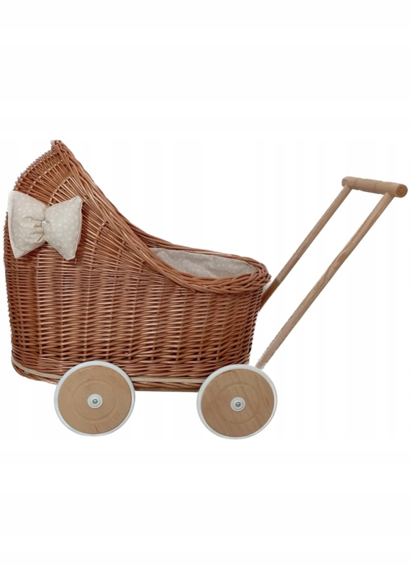 Натуральна плетена коляска для штовхачів ляльок з постільною білизною 1>