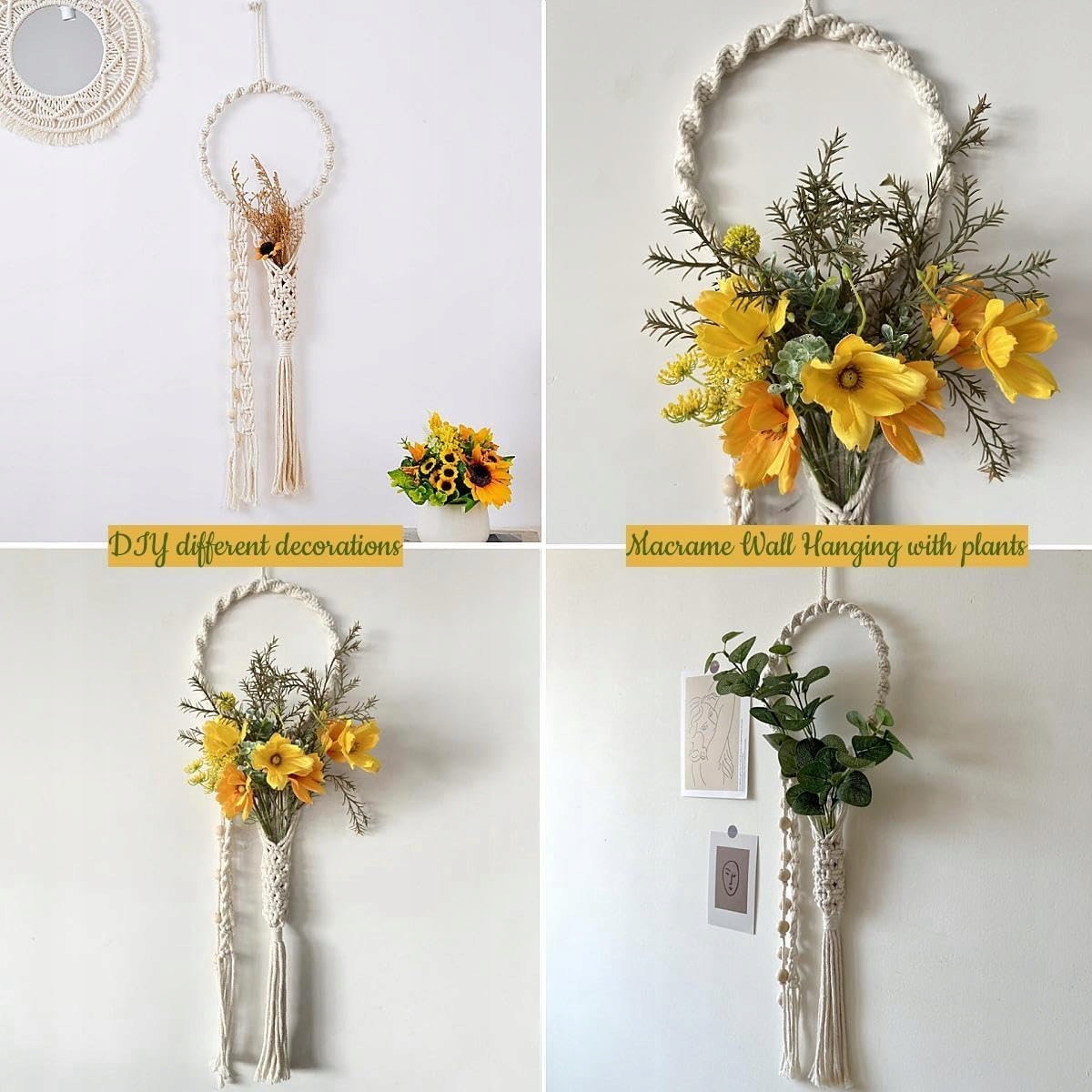 - Підставка для рослин у макраме: плетений гобелен виготовлено з натуральної бавовняної мотузки і має прибл. 68 см в довжину і 18 см в діаметрі; це 100% ручна робота. У комплект також входить зелена рослина, що імітує лист евкаліпта, яка легко вписується в борозенки на китиці. Ви також можете приклеїти рослини самостійно.