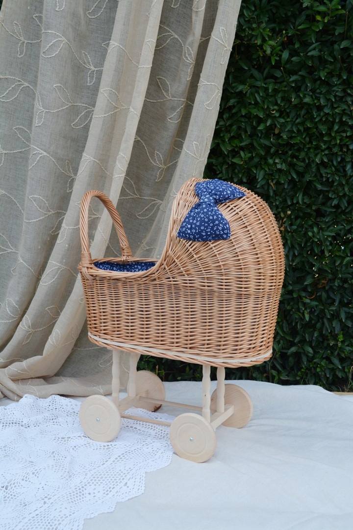 ПЛЕТЕНА ВІЗОК для ляльок + КАБЕЛІ натуральна МІКС