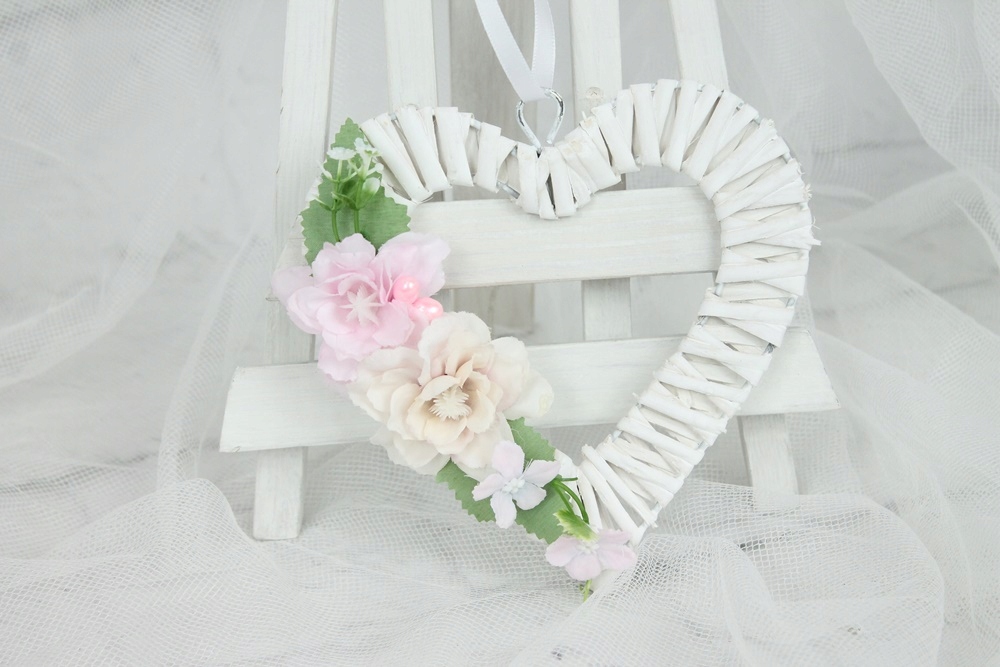 Плетене серце, центральна частина, прикраса для дому РОЖЕВИЙ ПУДР