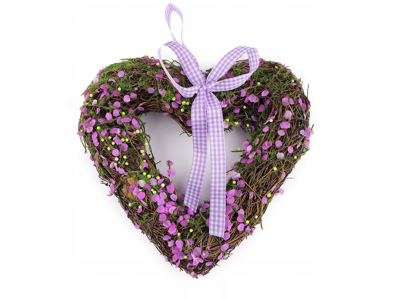 Плетене серце виділятиметься, якщо його повісити на двері, вікна та стіни. Маленькі текстильні пелюстки та штучний мох надають відчуття свіжості.
