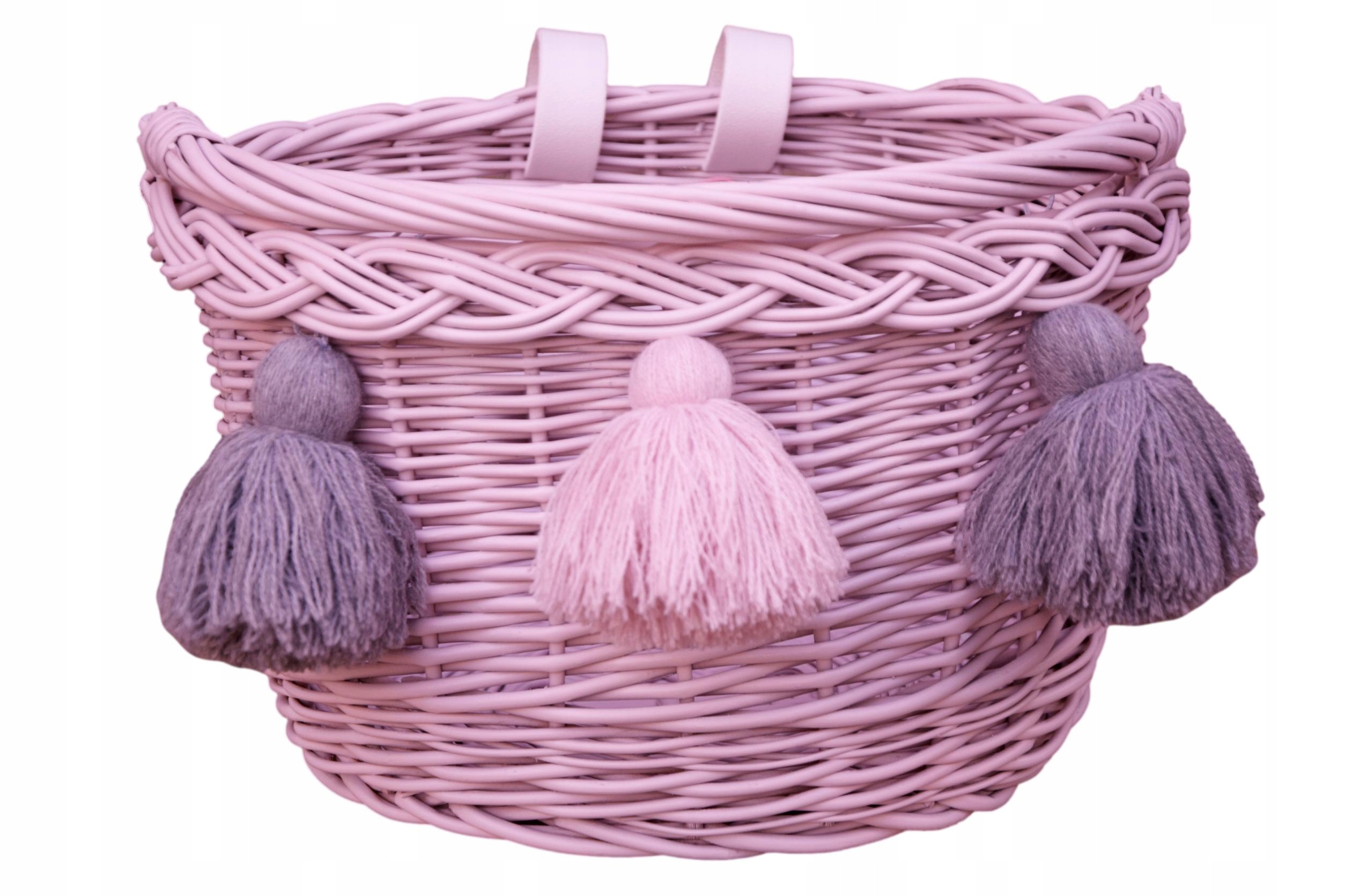 ГАРНИЙ МІНІ-КОШИК ДЛЯ ДИТЯЧОГО ВЕЛОСИПЕДА АБО СКУТЕРА в пудрово-рожевому кольорі - плетений кошик ідеально підходить для велосипедних прогулянок для найменших. Міні-кошик, адаптований для невеликих велосипедів або скутерів, ідеально підходить для транспортування нерозлучних талісманів.