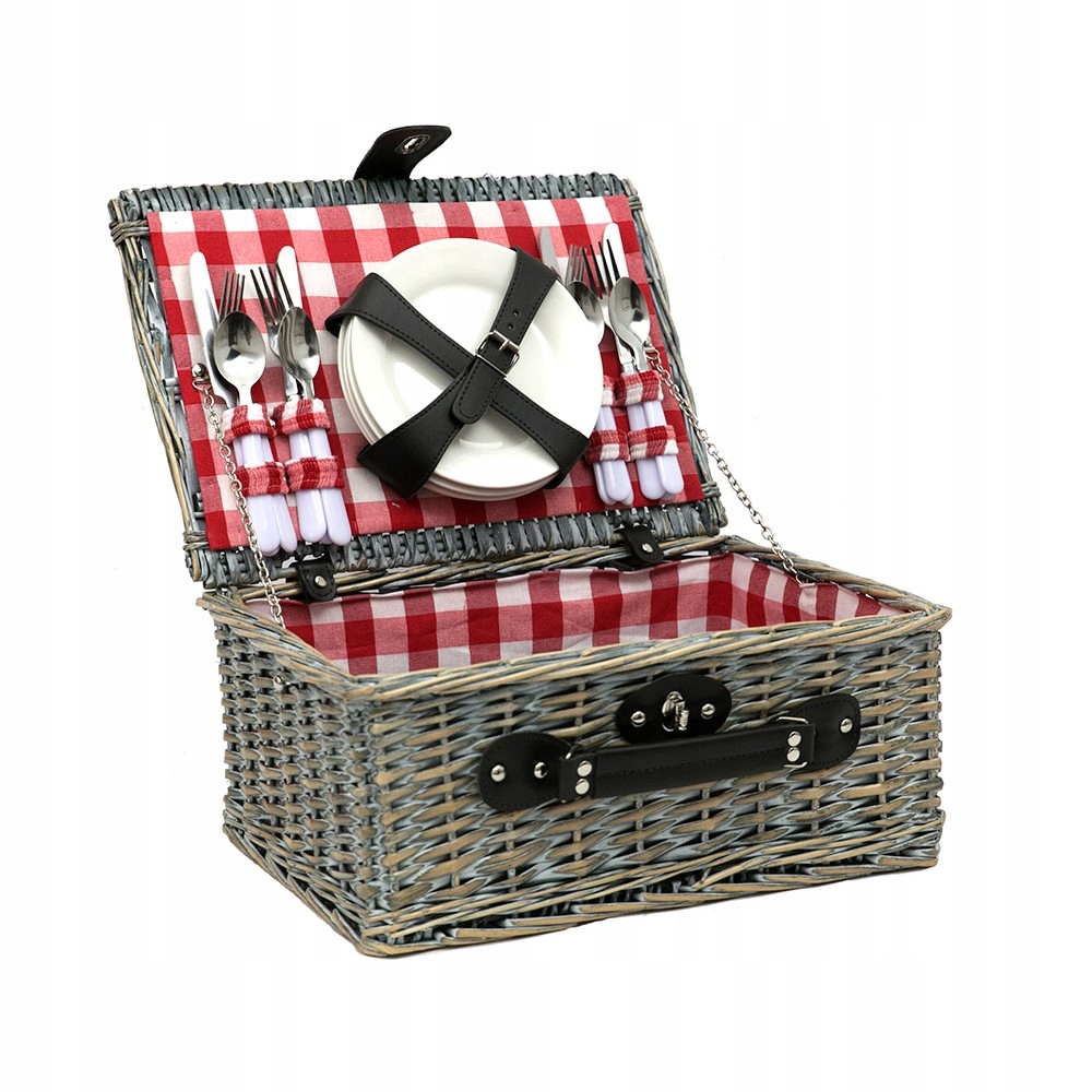 плетений кошик для пікніка, прокладений всередину червоним та білим картуваним матеріалом з обладнанням. Всередині є ремені, які захищають все обладнання від пошкоджень при перенесенні кошика. Відкрився зверху і петлі. Всередині прикріплені ланцюги, які захищають кошик від повного відкриття кошика. Закритий шкіряним ременем. Він також має шкіряну ручку. Комплект включає плетений кошик з тарілками, окулярами та столовами для 4 людей.