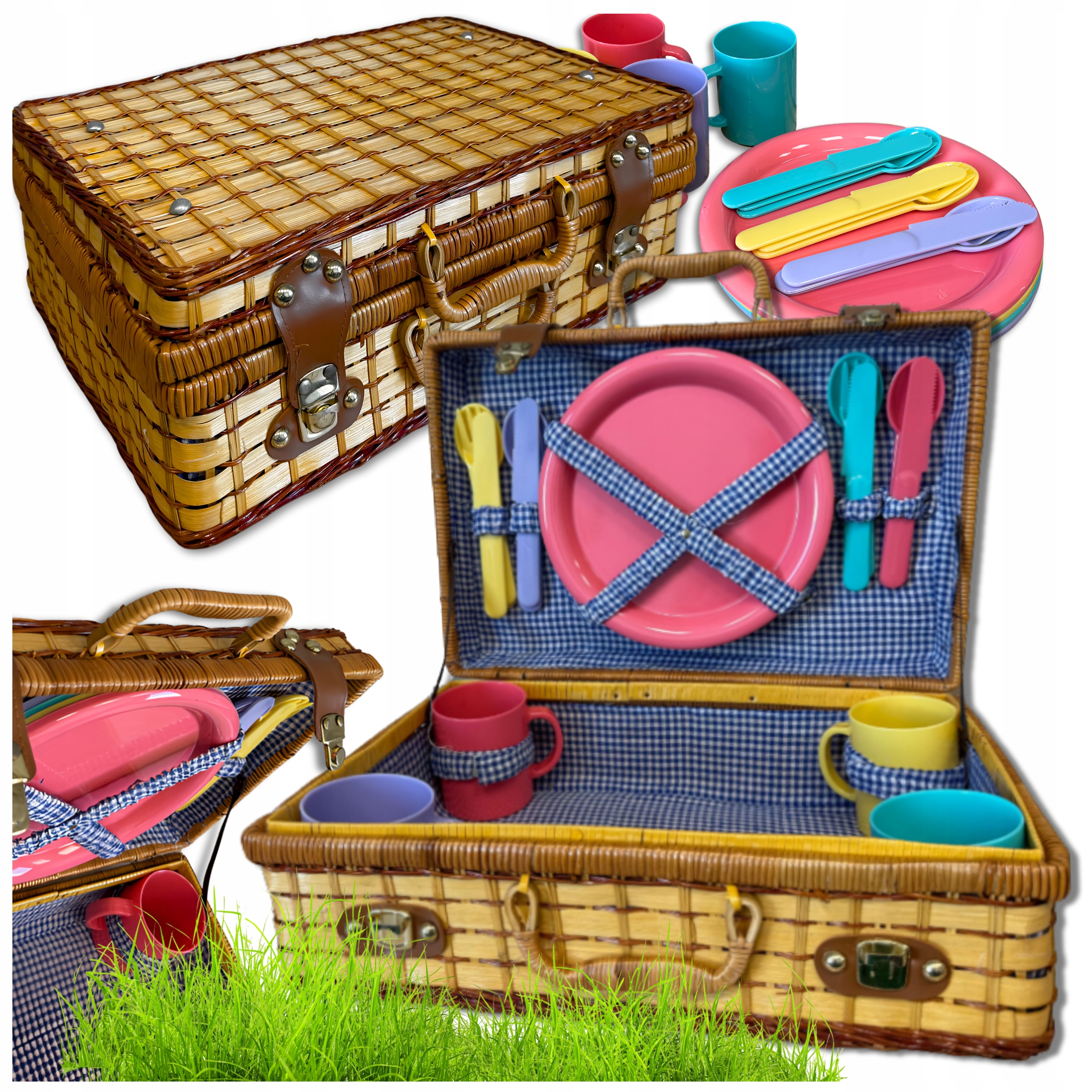 Вікерський кошик для пікніка, набір для 4 -х років посуд з столових пластин