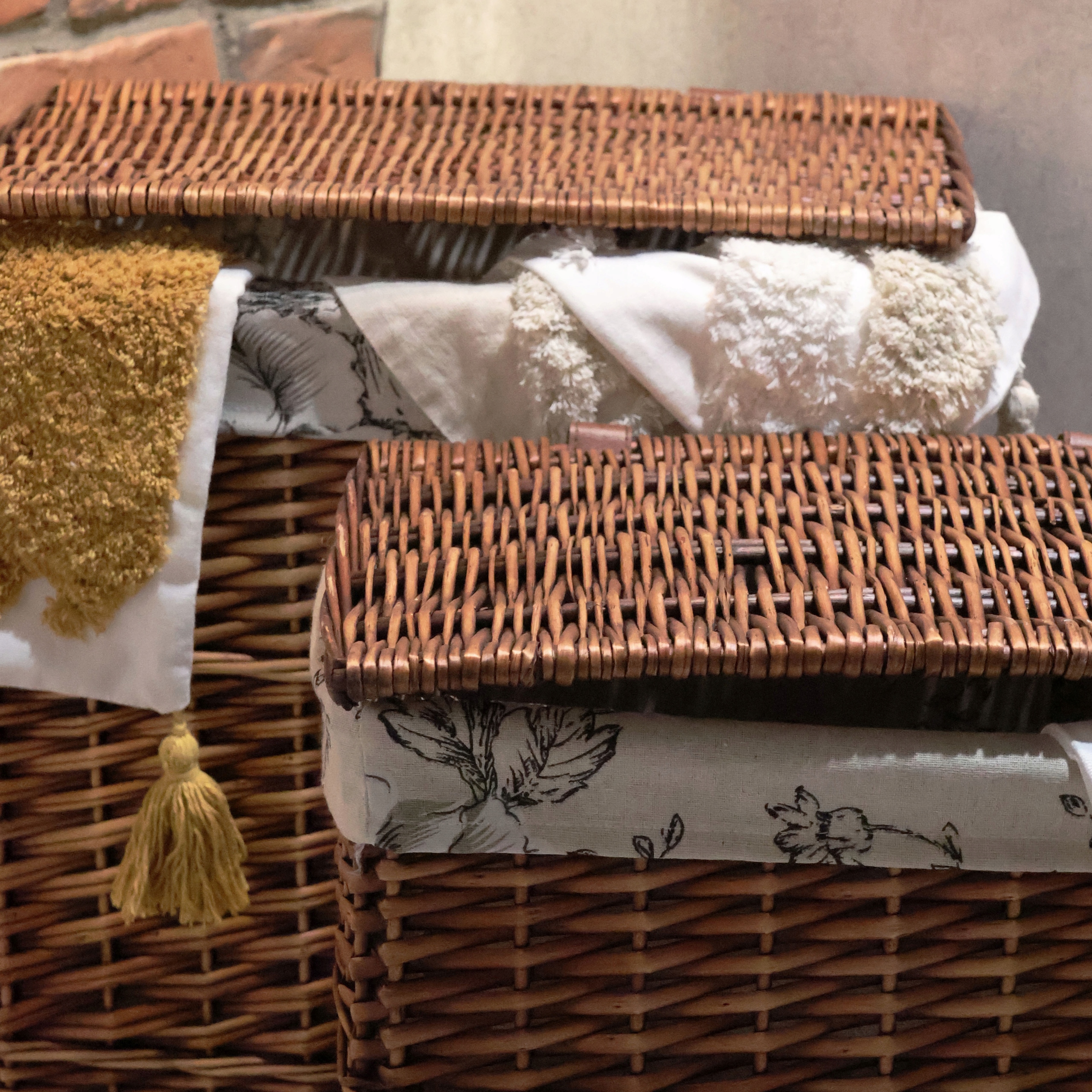 Виготовлений з природного плетеного, додає інтер'єру тепла та гармонії, а його позачасовий дизайн ідеально гармонізується як сучасними, так і класичними композиціями. Закрита кришка не тільки захищає вміст пилу, але й допомагає підтримувати порядок та акуратний вигляд кімнати.