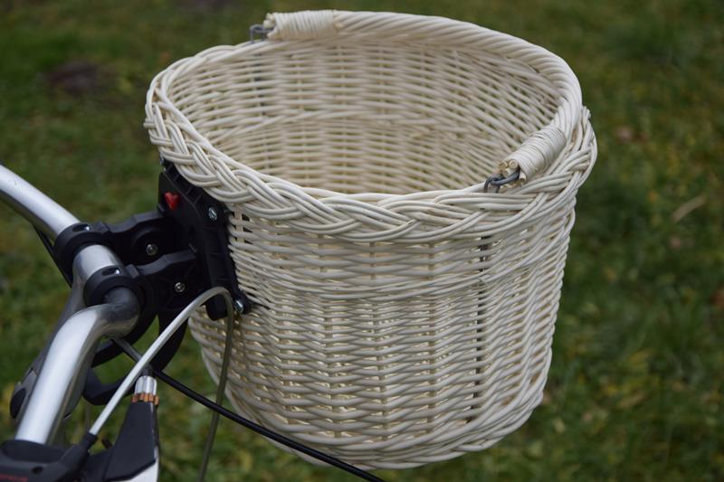 Плетений кошик для велосипеда CLICK з білої лози (НЕФАРБУВАНИЙ - білий з ніжним кремовим кольором) - кошик ідеально підходить для велосипедних прогулянок і шопінгу. Ретельне виготовлення та міцна конструкція забезпечують безпечне та зручне перенесення покупок. Кошик розміщується на передній частині керма за допомогою клацання. Монтаж кошика за допомогою «CLICK» забезпечує швидкий монтаж і демонтаж кошика без використання додаткових інструментів.