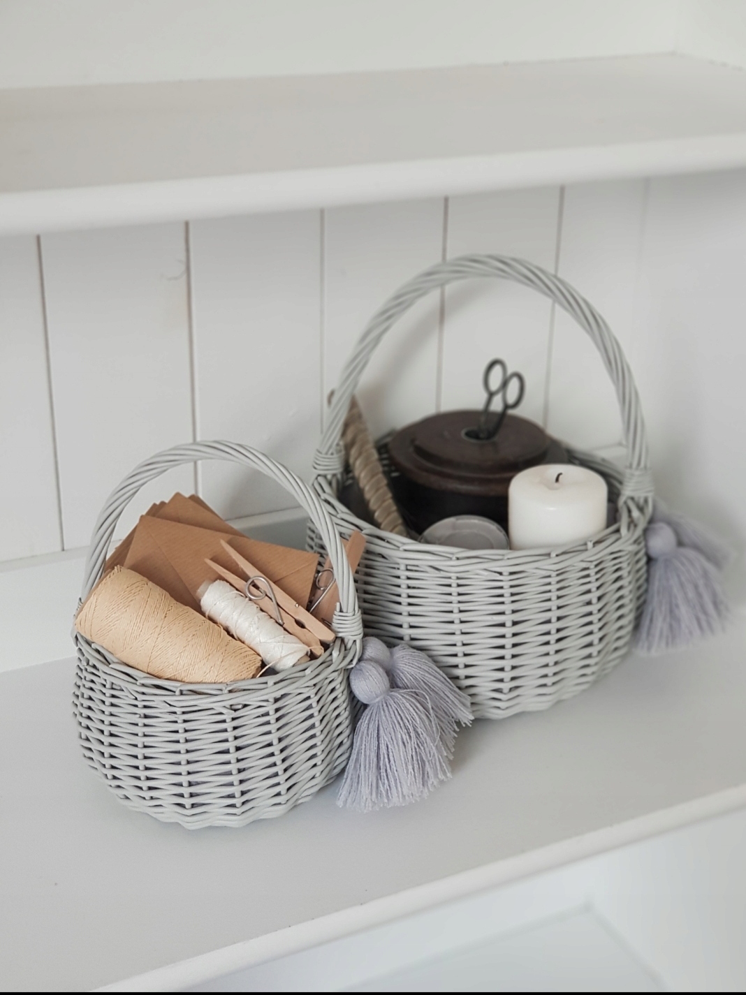 Кошик має дві китиці, прикріплені до нього , яку можна розв’язати та прикріпити в іншому місці.
