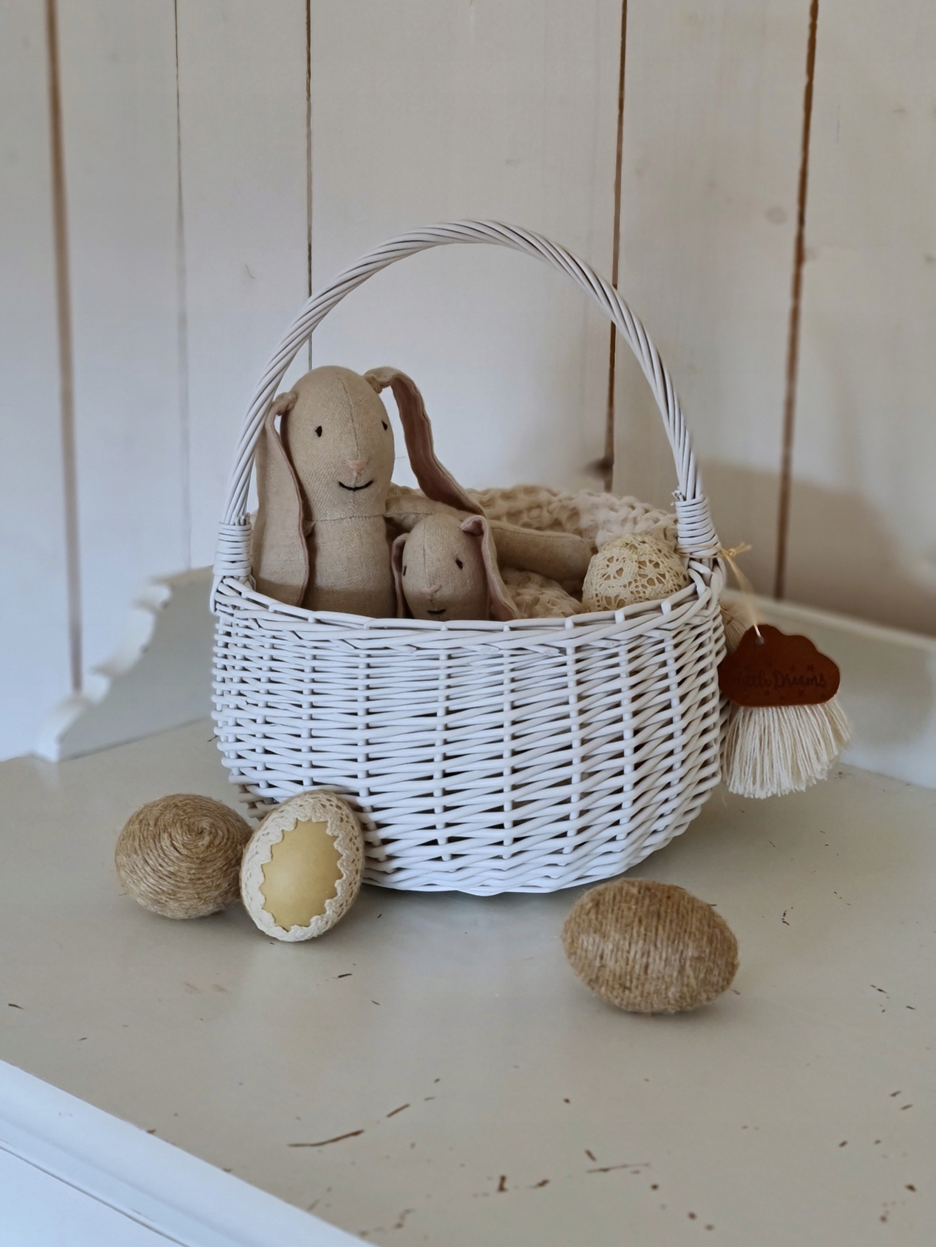 Кошик Кошик повністю ручної роботи з лози найвищої якості. , що надходить з польських ферм. Він пофарбований в білий колір спеціальною екологічною фарбою, яка дуже стійка до пошкоджень. Наші фарби сертифіковані Національним інститутом гігієни і можуть використовуватися для фарбування дитячих іграшок та меблів.
