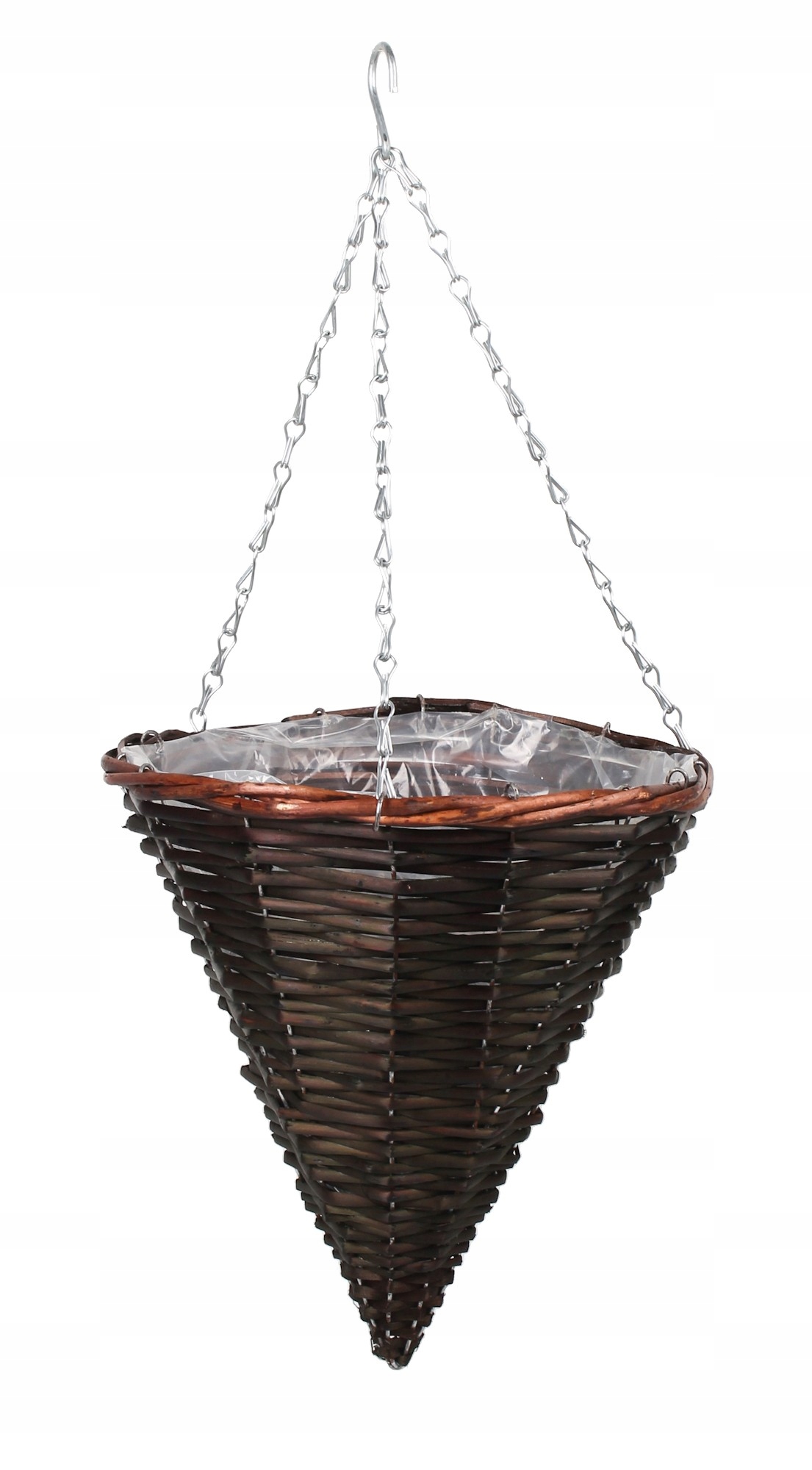 КОРИЧНЕВИЙ ПІДВІСНИЙ КОШИК КОНУС З ФОЛЬГОЮ ДЛЯ КВІТІВ 28x28x32/68 см