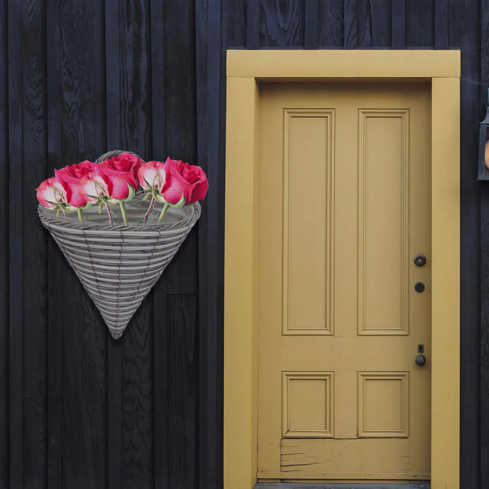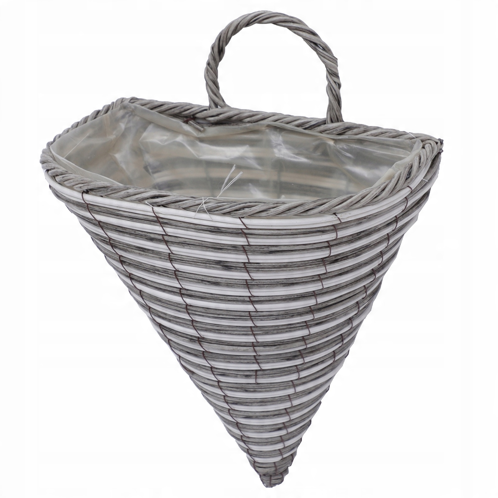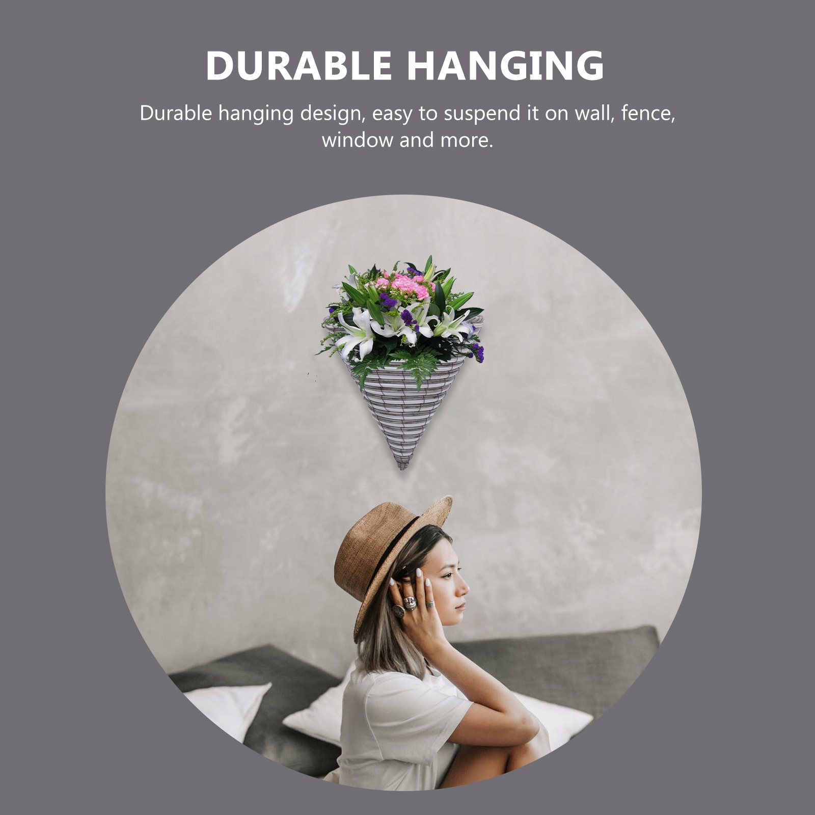 Цей виріб — витончений плетений кошик для квітів, який імітує плетений квітковий кошик, у сільському стилі та ручної роботи. Він виготовлений з преміального матеріалу, тому цей виріб довговічний і ви можете використовувати його протягом певного часу. Підходить як для весільних квітів, так і для прикраси кімнати. Посадіть усередині красиві квіти, щоб прикрасити свій дім.