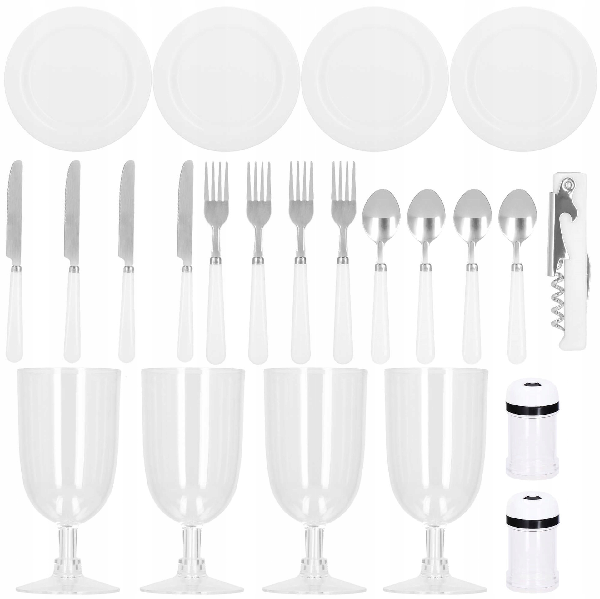 - 4x spoon, 4x fork, 4x ніж - столові прилади, виготовлені з нержавіючої сталі, з пластиковими ручками штучні