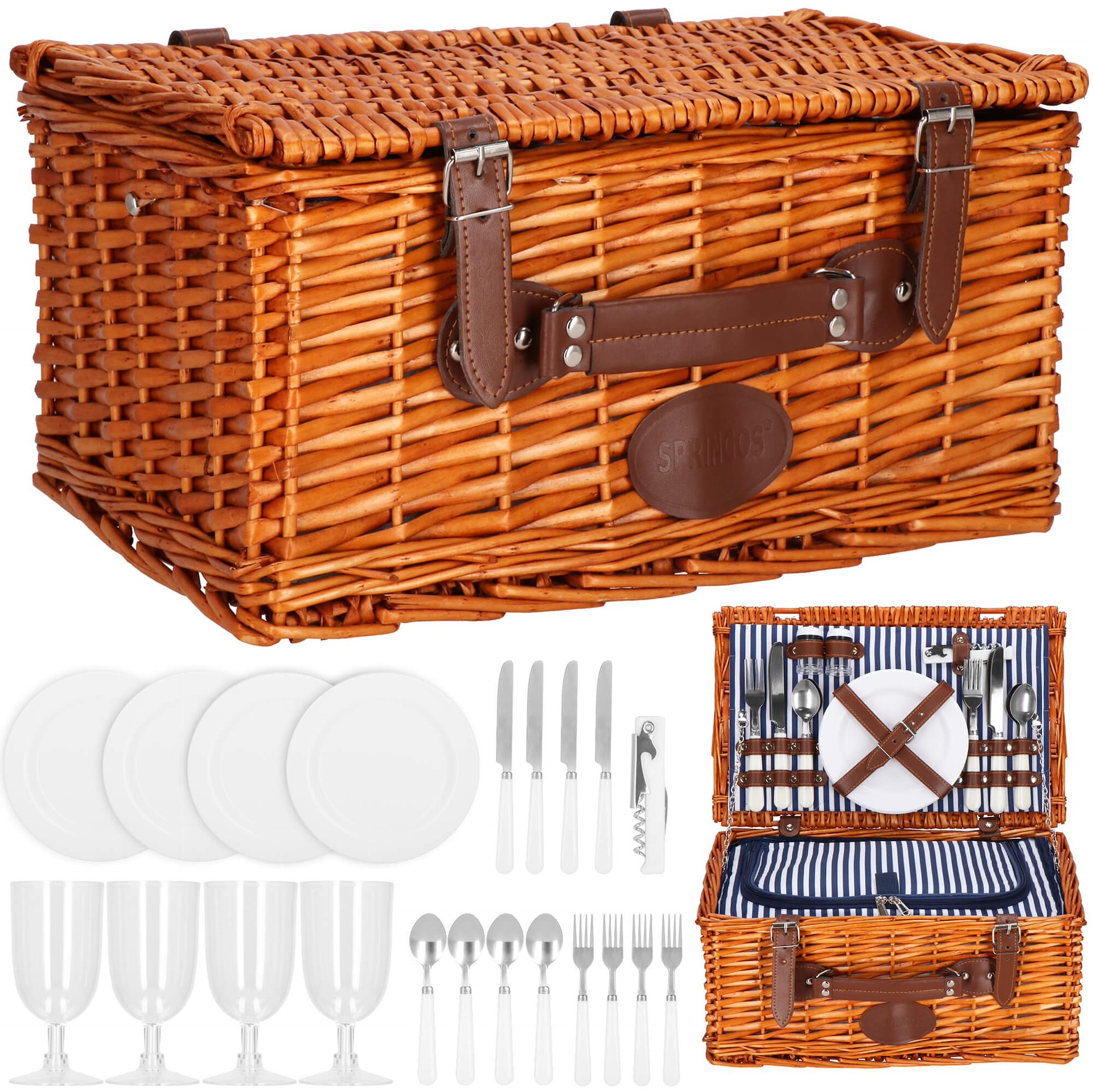 Надзвичайна кошик для пікніка Springos з обладнанням - це фантастичне рішення як для гарячих, так і для прохолодних днів. Це буде корисно в поїздок за межами міста, вигуки на пляж або до гір . Завдяки теплоізоляції, він тривалий час підтримує температуру. Підсилений плетений дизайн та обробка ручки забезпечують безпечну передачу продуктів. Це абсолютно повинно мати у кожному будинку.