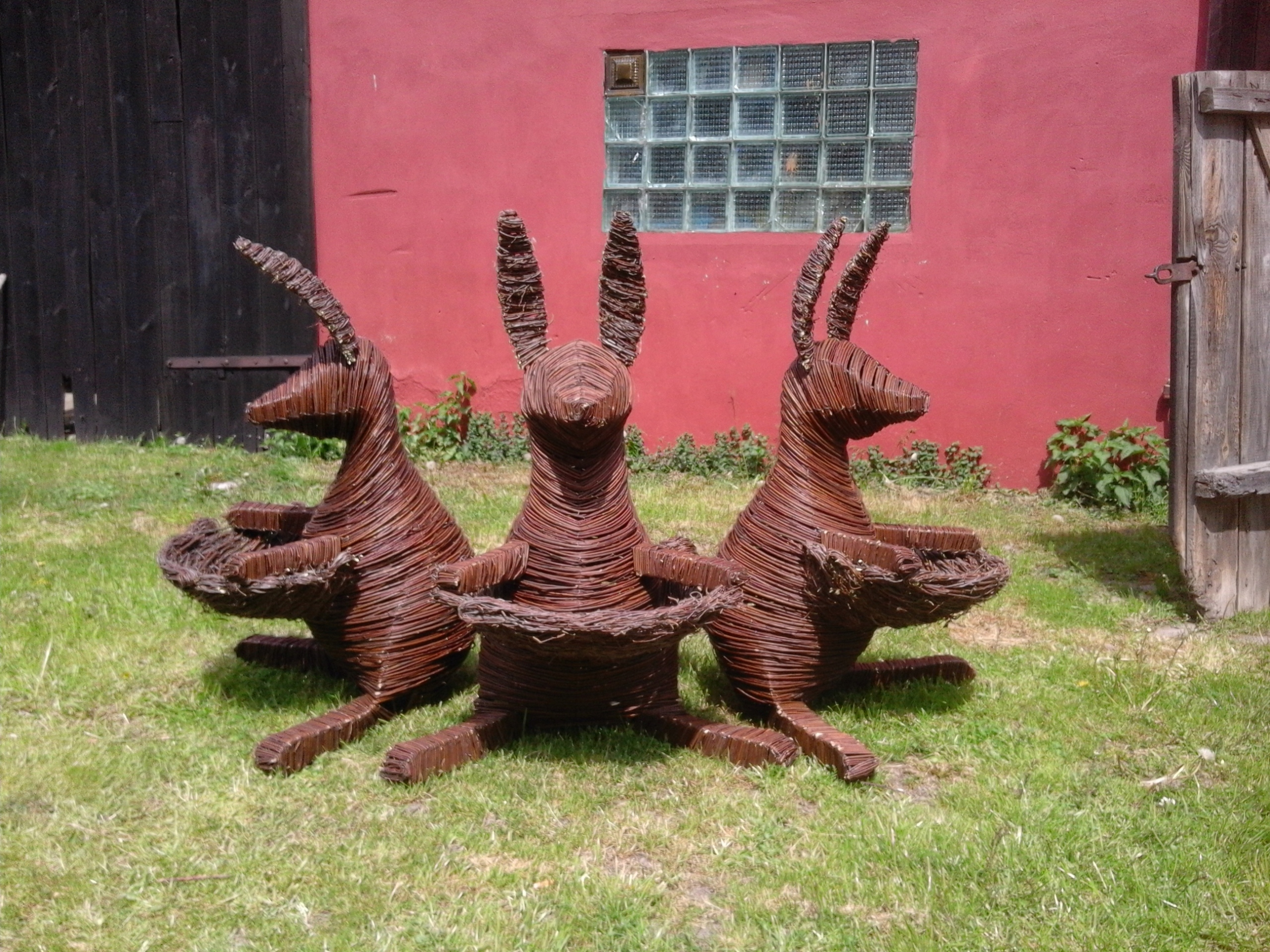 Оригінальна плетена прикраса - Заєць. Прекрасна прикраса для саду. Висота 95 см завширшки 70 см. Польські речовини!