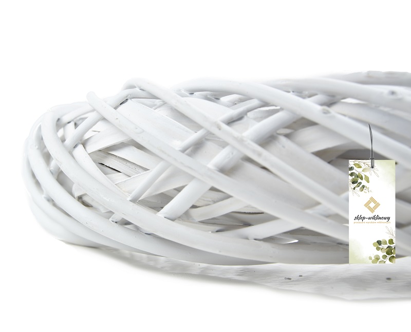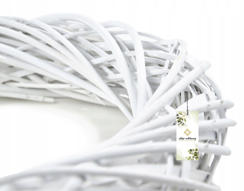 Білий плетений вінок з діаметром 40 см - це позачасовий декоративний елемент, який ідеально поєднує природний шарм з універсальним використанням. Модель із вражаючим зовнішнім діаметром 40 см відрізняється тонкою витонченістю та міцною конструкцією, завдяки якій вона буде використовуватися в різних декоративних проектах. Її товщина 8 см робить вінок виразним і ефективним, а внутрішній діаметр близько 23 см пропонує місце для будь -якої розташування.