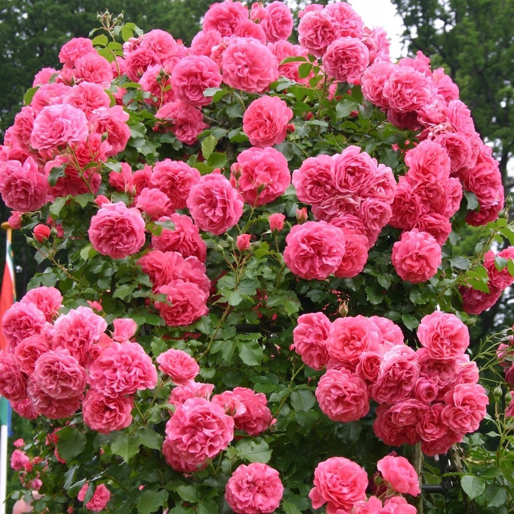 Троянда, відома як плетиста або паркова, висотою до 2-3 м. Як вільно зростаючий кущ, йому потрібно близько 2 м, гілки звисають в сторони. При опорі росте вгору, починає цвісти рано, наприкінці травня щільними суцвіттями (навіть більше 20 на стеблі). Квітки красиві, темно-рожеві, повні, великі, діаметром 11 см, ароматні. Хвилясті пелюстки. Квіти довго тримаються на кущі, у міру відцвітання в’януть. Цвітіння триває до заморозків.