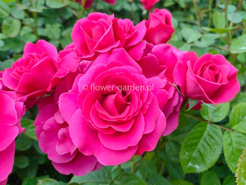 Троянди з групи Courtyard® — плетисті троянди з жорсткими пагонами. Ростуть пишно, досягаючи висоти 200-300 см. Вимагають підв'язування до опор. Сорт 'Pasillo' - кущ з напівмахровими великими квітками (8-10 см), темно-рожевого кольору, виростають від 1,5 м до 2 м у висоту. Рясно цвіте в червні, повторюючи цвітіння до пізньої осені. Темно-зелене, блискуче листя.