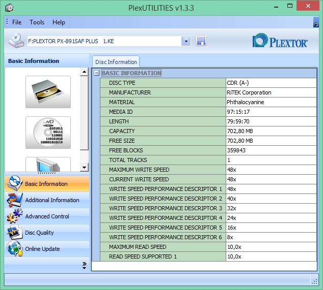 Диск має хорошу якість і технологію виробництва, а також стратегію запису, яка залишається незмінною протягом багатьох років, що означає, що навіть найстаріші приводи CD-RW не мають проблем із розпізнаванням і записом цього носія CD-R.