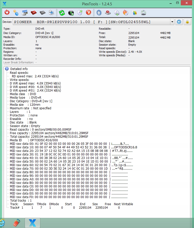 Логотип виробника Plextor PlexDisc DVD+R LOGO - OptoDisc press plant MID: OPTODISCR16 (ідентифікатор виробника)