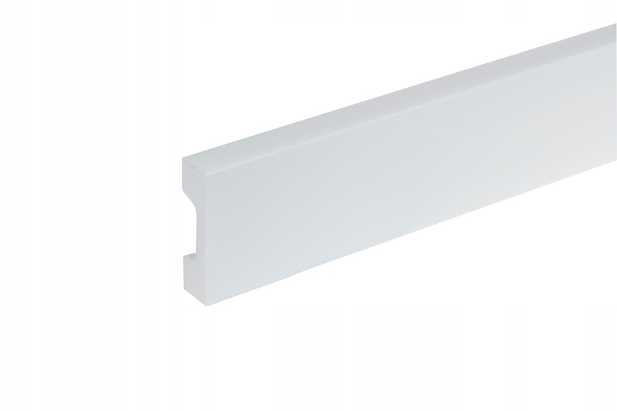 Декоративний загартований поліуретановий плінтус білого кольору, підходить для фарбування будь-якими фарбами, покритий ґрунтовкою.