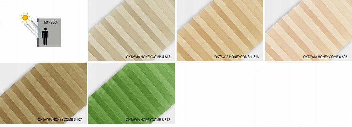 OCTAWIA і MALAYSJA HONEYCOMB - матеріал, комбінований з двох складок. Для тканини «соти» характерні менші складки в складці. У розрізі нагадує стільники. Завдяки подвійній формі отвори, необхідні для проходження ниток, не видно. Ці отвори приховані всередині матеріалу.