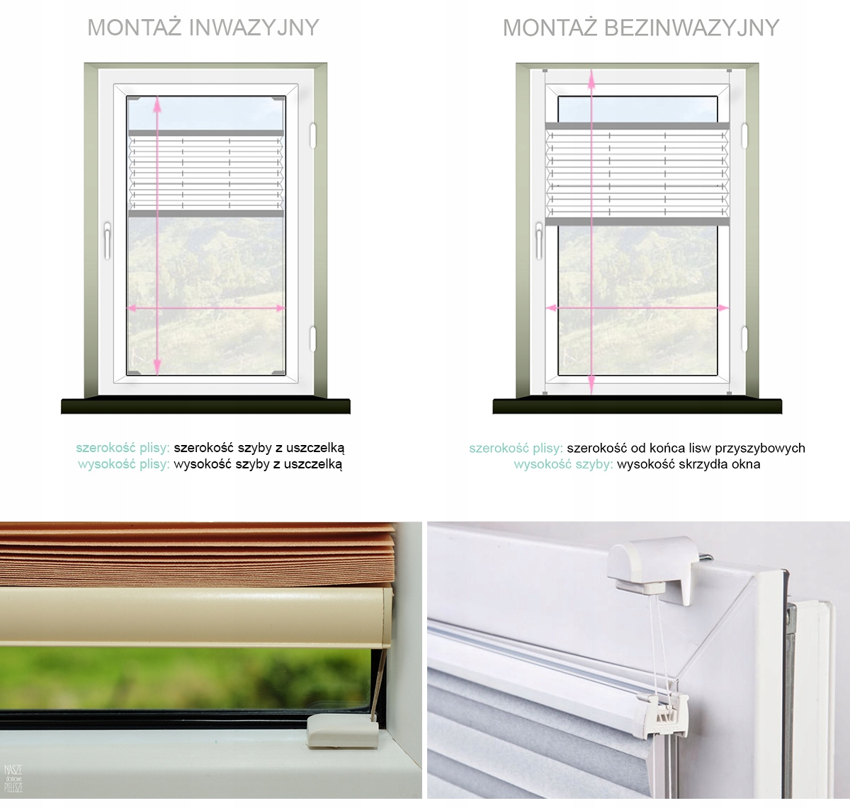 Встановлення плісе дуже швидке та просте. Інвазивний монтаж (зі свердлінням) передбачає пригвинчування фіксаторів до штапиків. Неінвазивний монтаж (без свердління) передбачає кріплення рулонної штори до віконної рами за допомогою гачків.