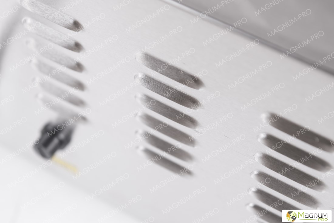 Корпус виготовлено з високоякісної нержавіючої сталі, яку дуже просто обслуговувати та тримати в чистоті. Гладка нагрівальна плита виготовлена з високоякісного чавуну, який дуже довго зберігає температуру та легко миється.