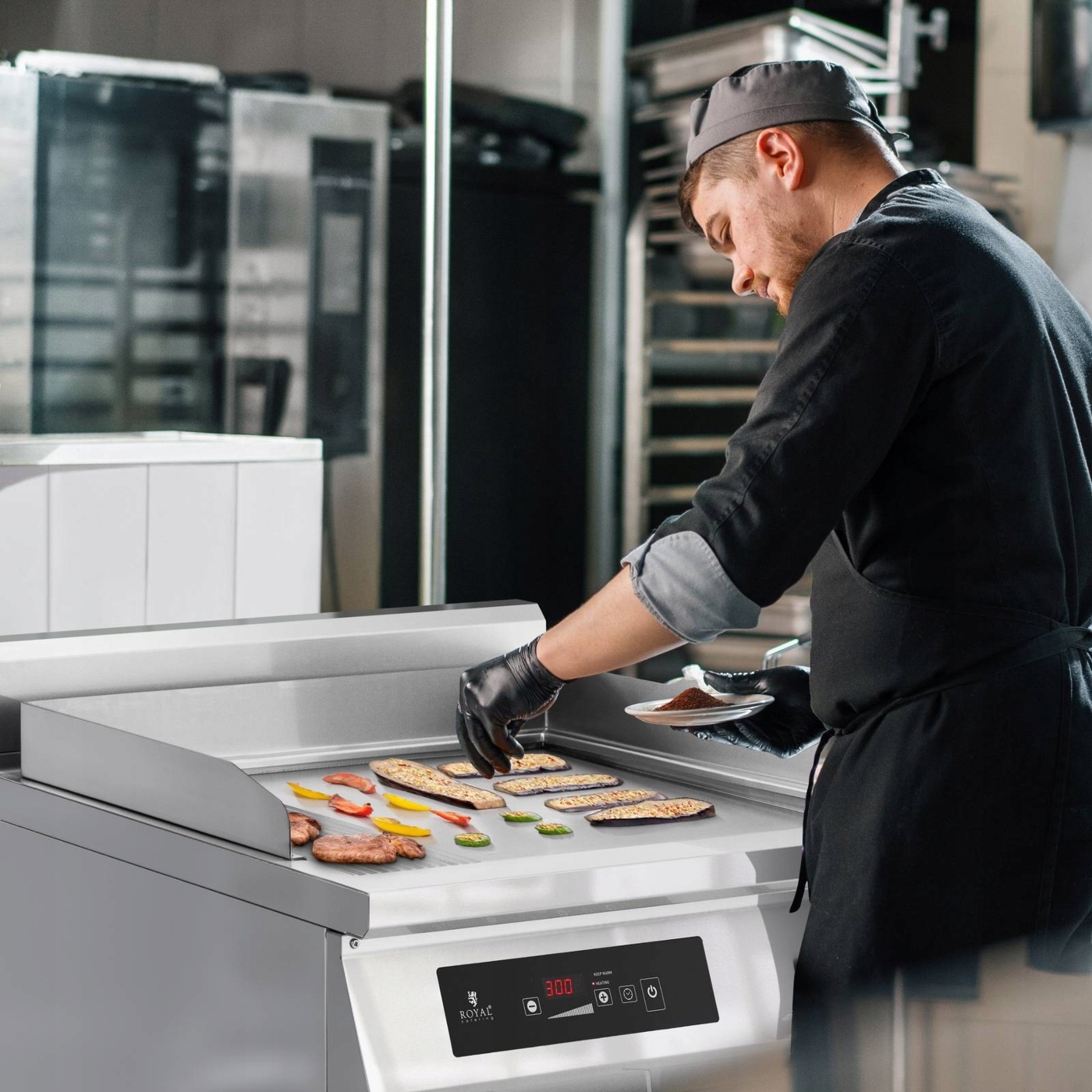 З індукційним грилем Royal Catering ви можете балувати своїх гостей смачними та ситними стравами на грилі протягом усього року. Будь то соковиті стейки та гамбургери, риба, омлет, тортилья чи овочі – з індукційною плитою ваша фантазія не має меж. Гриль вражає своєю тихою роботою та гігієнічним і дуже чистим способом роботи. Крім того, пристрій ідеально підходить для великих і маленьких кухонь - від фаст-фуд-барів і фуд-траків до гуртожитків і будинків відпочинку.