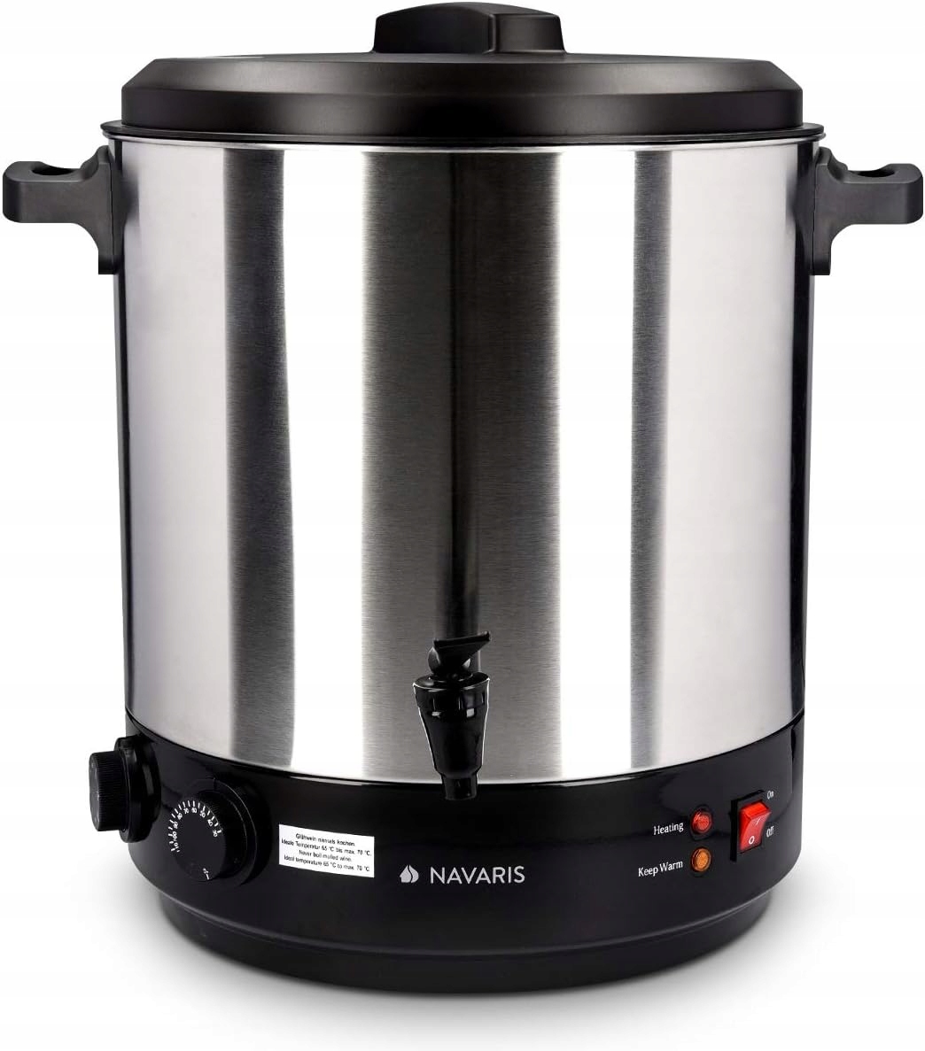 Автоматична варильна машина Navaris 2 в 1 з функцією глінтвейну - таймер на 27 літрів, термостат на 120 хвилин - каструля також для гарячих напоїв, срібна