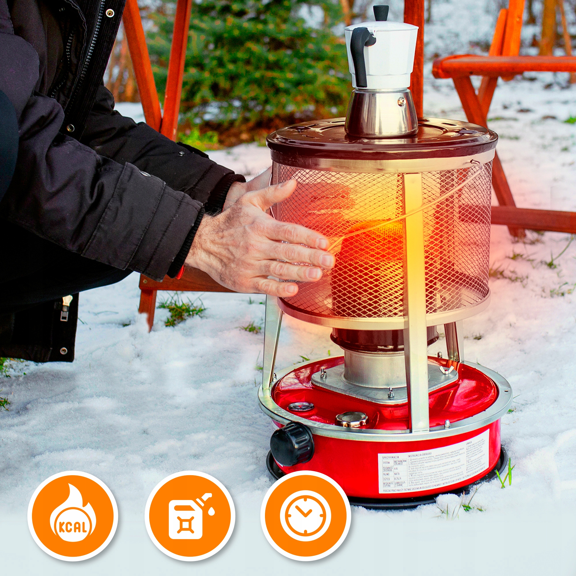 Портативний керосиновий обігрівач Extralink Aladdin із високою ефективністю створює комфортне середовище навколо вас і тепле середовище. Обігрівач Aladdin відмінно підійде для вирішення проблем, пов'язаних з відсутністю електричного опалення, або як джерело тепла в зимовий період. Він також зігріє вас під час кемпінгу та дозволить вам кип’ятити воду, що полегшить приготування гарячого напою чи їжі.