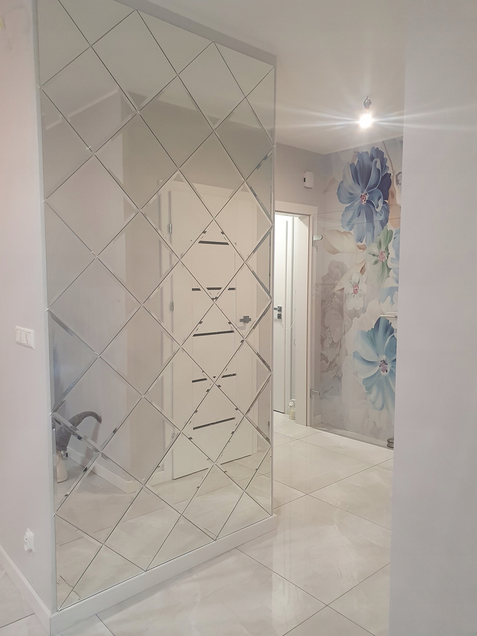 - Дзеркала можна приклеїти на пофарбовану стіну, шлейфери, глазур тощо.