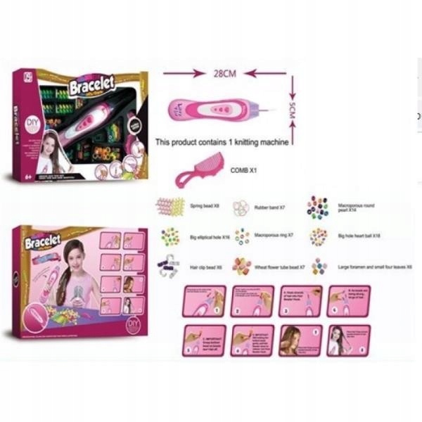 До пристрою для плетіння входять намистини, гумки та гребінець. Створюйте з ним різноманітні комбінації, які підкреслять вашу індивідуальність. Будь-яке поєднання кольорів виділить вас, зробить ваше волосся красивішим. На упаковці є інструкція з використання пристрою для плетіння.