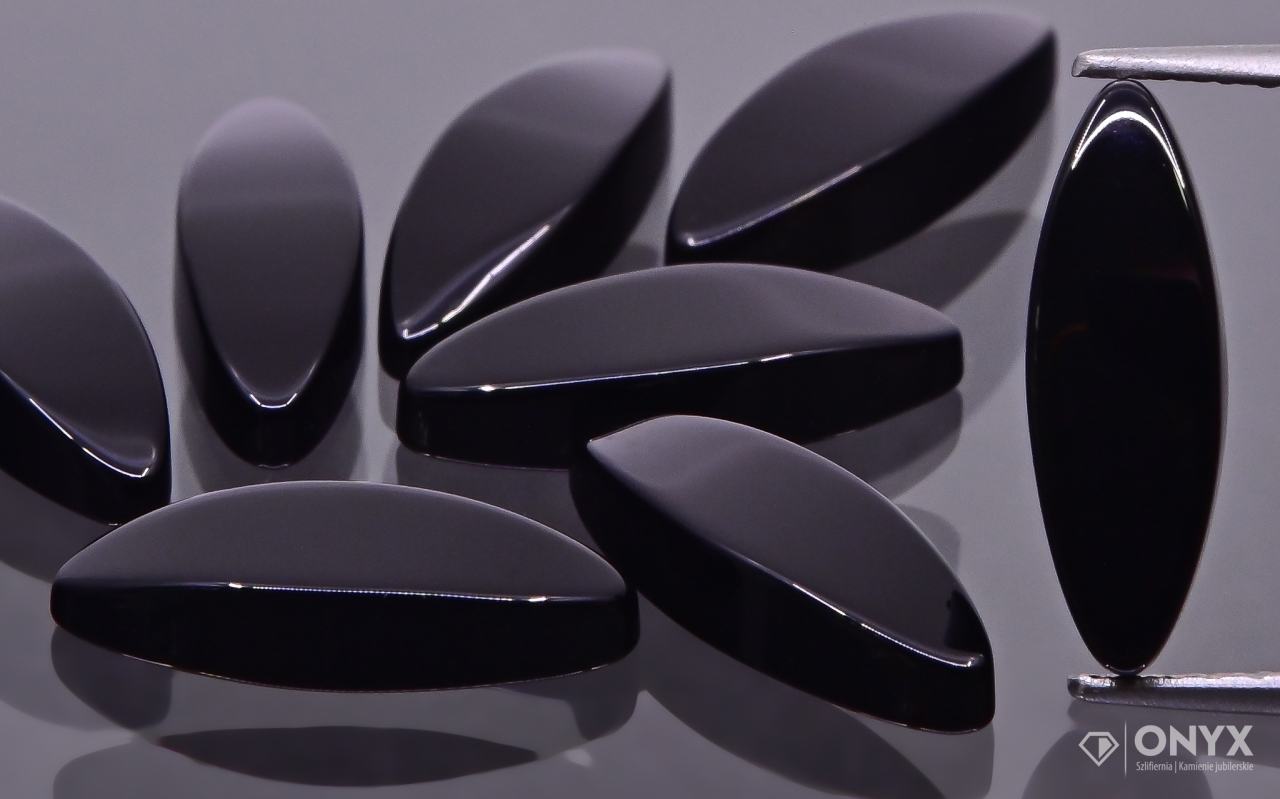 Онікс - відноситься до групи кварцу (SiO2). Це непрозорий мінерал, який характеризується структурою з багатьох чорних і білих шарів смуг. Вони також бувають зеленого та білого кольорів.