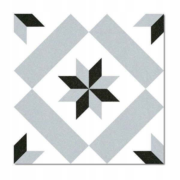 Ця плитка стилізована під рустикальну плитку виділяються тонким малюнком, який поєднує ніжні відтінки сірого з геометричним зірковим мотивом. Цей візерунок, натхненний класичною плиткою ручної роботи, надає простору затишний, домашній характер, зберігаючи сучасний стиль. Це чудовий вибір для людей, які хочуть додати тепла у свій інтер’єр, зберігаючи при цьому мінімалістичний, елегантний зовнішній вигляд.