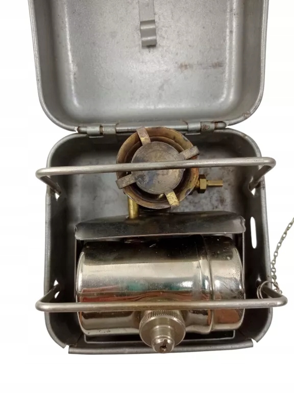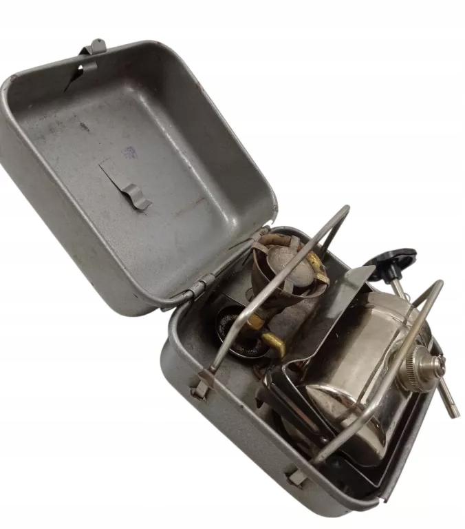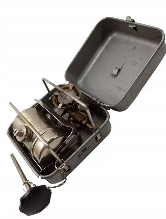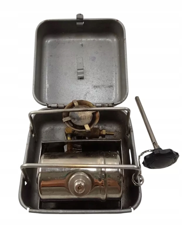 Пропонуємо радянську туристичну піч ПТ-1 в металевій коробці. Це класична переносна бензинова пічка часів СРСР, яка ідеально підходить для колекціонерів військової техніки, любителів ретро туристичного спорядження чи історичних реконструкцій.
