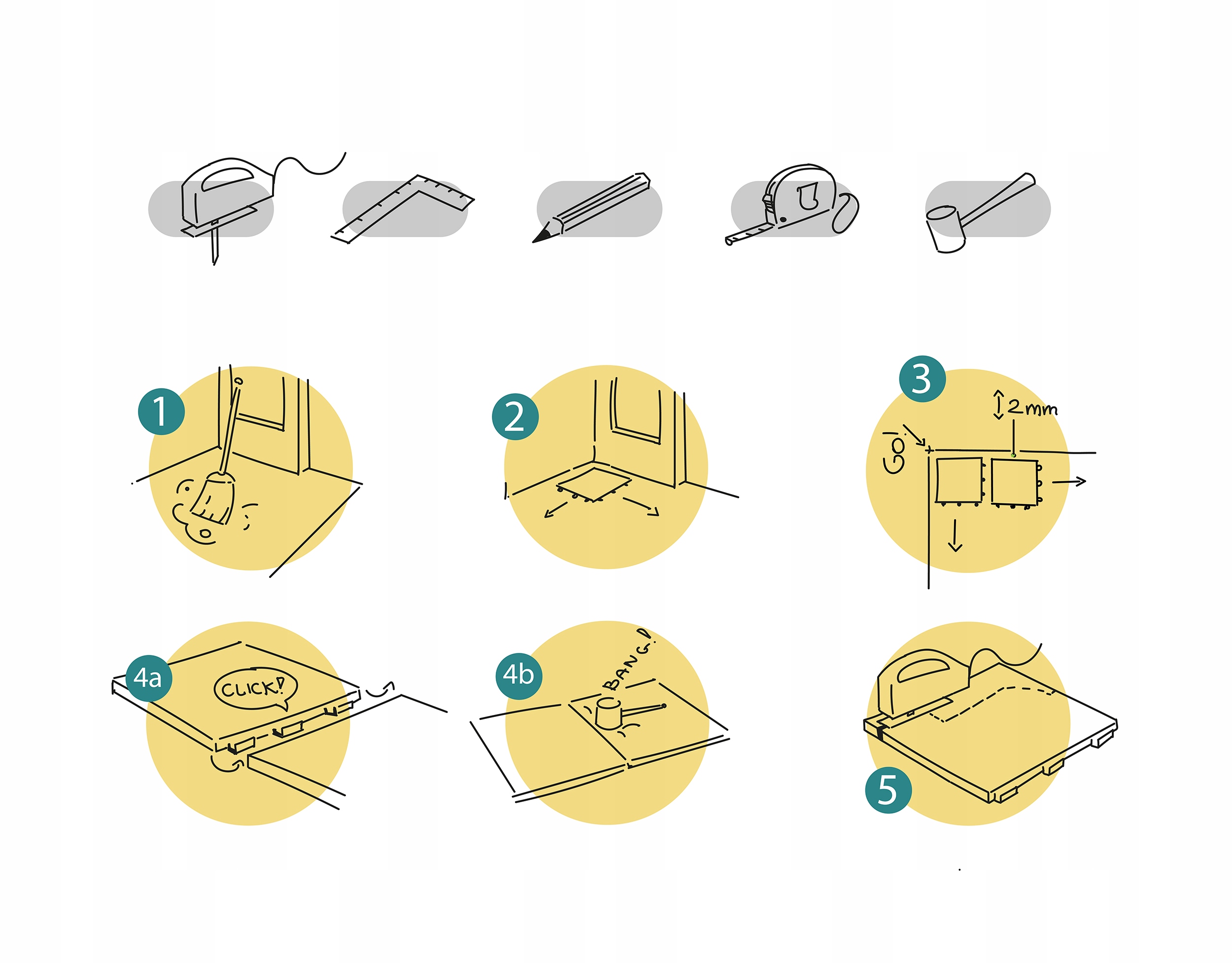 - Плитку можна встановлювати на наявні підлоги та основи, які є твердими, гладкими, сухими, рівними, надійно закріпленими та очистіть.