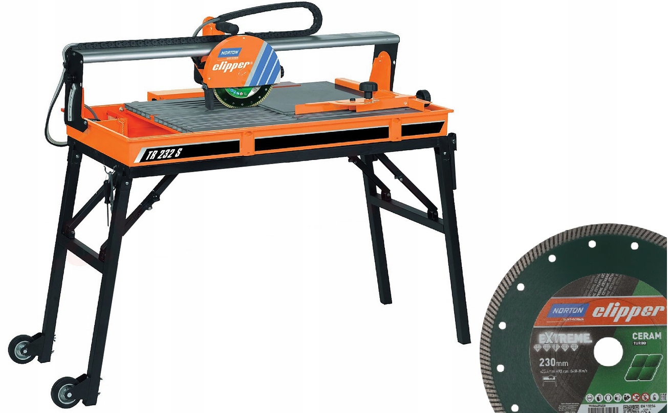 Плиткоріз Norton Clipper TR232S — це професійний інструмент для плиточників для різання плитки алмазними дисками. Різак призначений для різання плитки максимальною довжиною 86 см і товщиною 15 мм. Зручний у транспортуванні та зберіганні дизайн робить пристрій дуже мобільним і ідеальним для ремонтних і будівельних робіт.