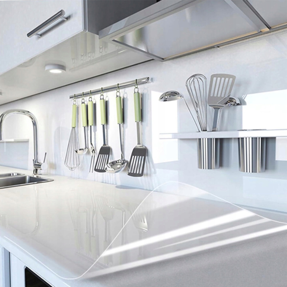 Цей продукт виготовлено з прозорого ПЕТ матеріалу, який є водонепроникним, маслостійким, термостійким і легко миється. Особливо підходить для захисту стін і меблів на кухні.