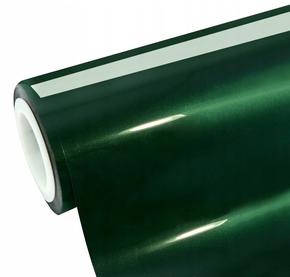 Фольга автомобіля Зелений алмазний металік у темному відтінку з безбарвною фольгою, що захищає належну фольгу, яку слід видалити (зняття до застосування збільшить пластичність). Це полегшує видалення бульбашок повітря під час застосування, що робить заявку простішим та швидшим порівняно з фольгою звичайним клеєм. Фольга - це термопластична , вона ідеально підходить для зовнішнього використання - обгортання цілих автомобілів , а також внутрішнього використання, таких як декоративні елементи кабіни, приладова панель тощо. Фолька використовує самостійне адгезійне адгезійне адгезійне, що захищає праймер pet - початкова адгезія адгезивної програми не є такою сильною, завдяки чому, завдяки чому.