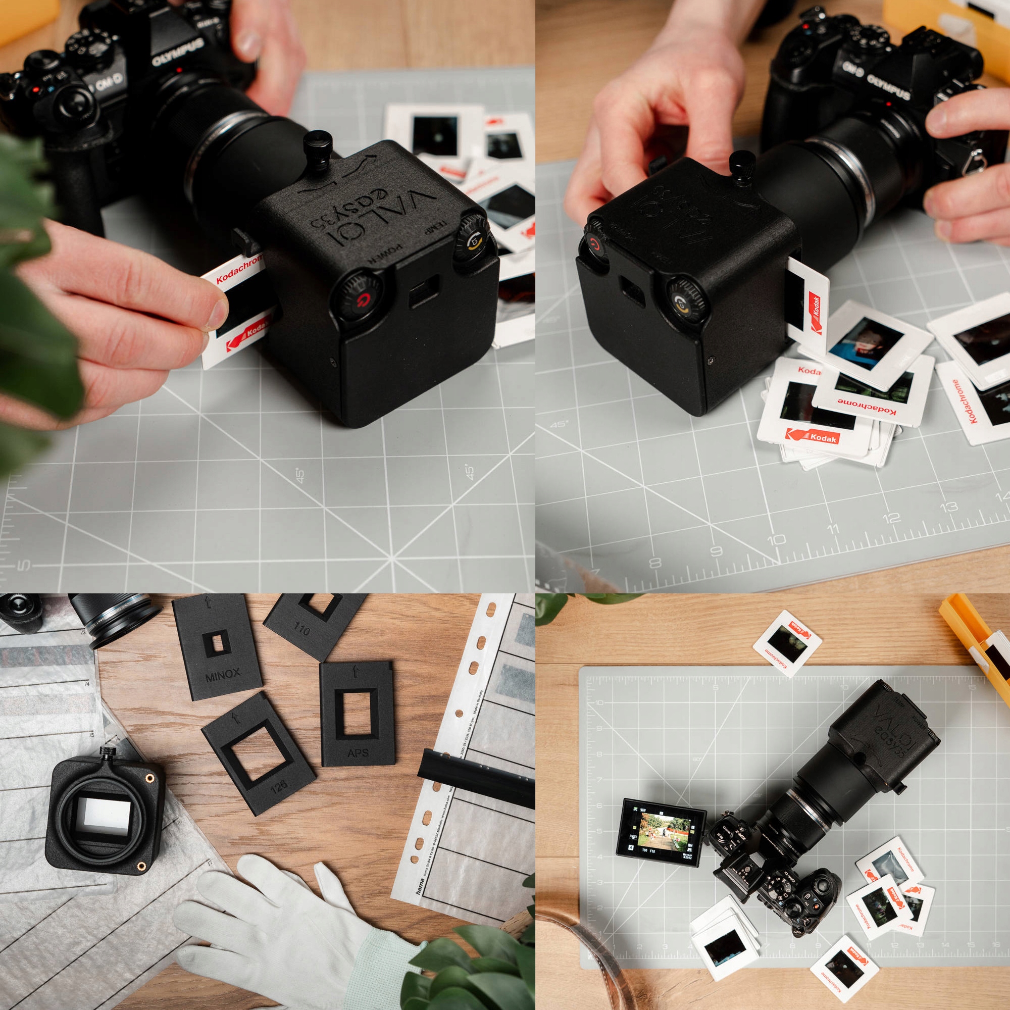 VALOI easy35 прикручується до макрооб’єктива, дозволяючи сканувати 35-міліметрову плівку цифровою камерою. З easy35 налаштування, вирівнювання або помилки мінімальні. помилки, оскільки конструкція забезпечує затінення від світла, ідеальне вирівнювання та надійне кріплення до камери. У комплект входять трубки діаметром 280 мм, що дає змогу використовувати більшість макрооб’єктивів на ринку.