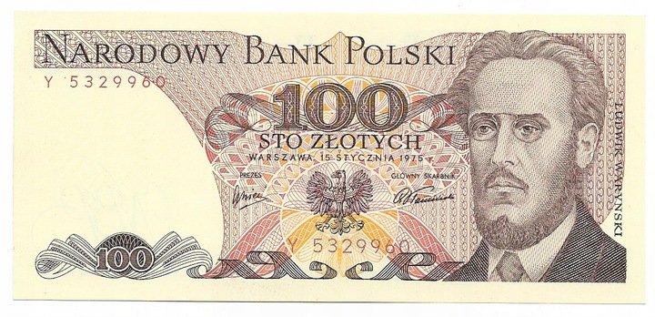 PLN 100 L. Waryński 1975r серія Y Stanie UNC Route !!!