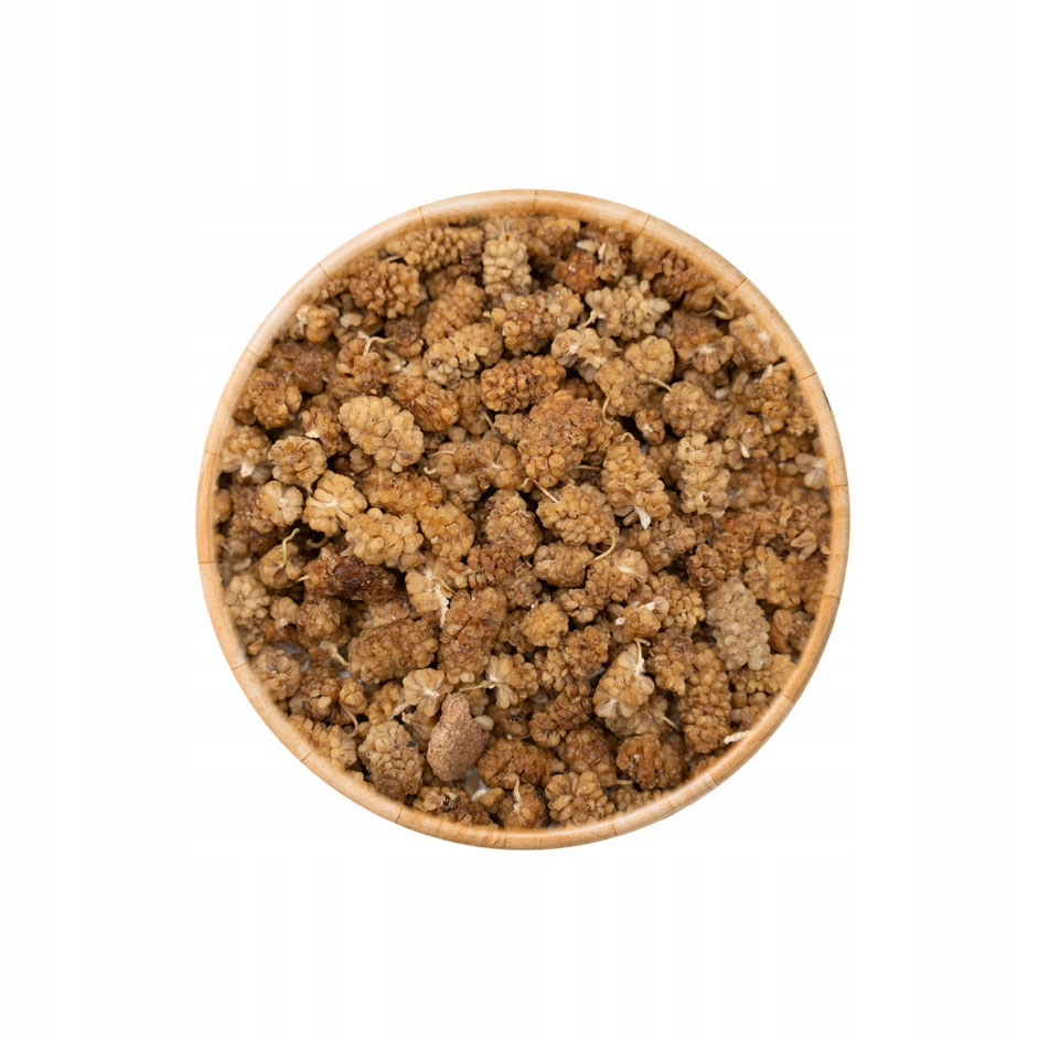 Сушені плоди шовковиці білої - це смачна закуска, альтернатива іншим солодким закускам. Плоди білої шовковиці можуть бути доповненням до сніданку, додавати в пластівці, мюслі або йогурт. Їх також можна додавати в десерти, торти, печиво або тарти. Плоди шовковиці також можна додавати в салат разом з руколою, фетою, філе індички і грушею. Плоди білої шовковиці мають неповторний солодкий смак.