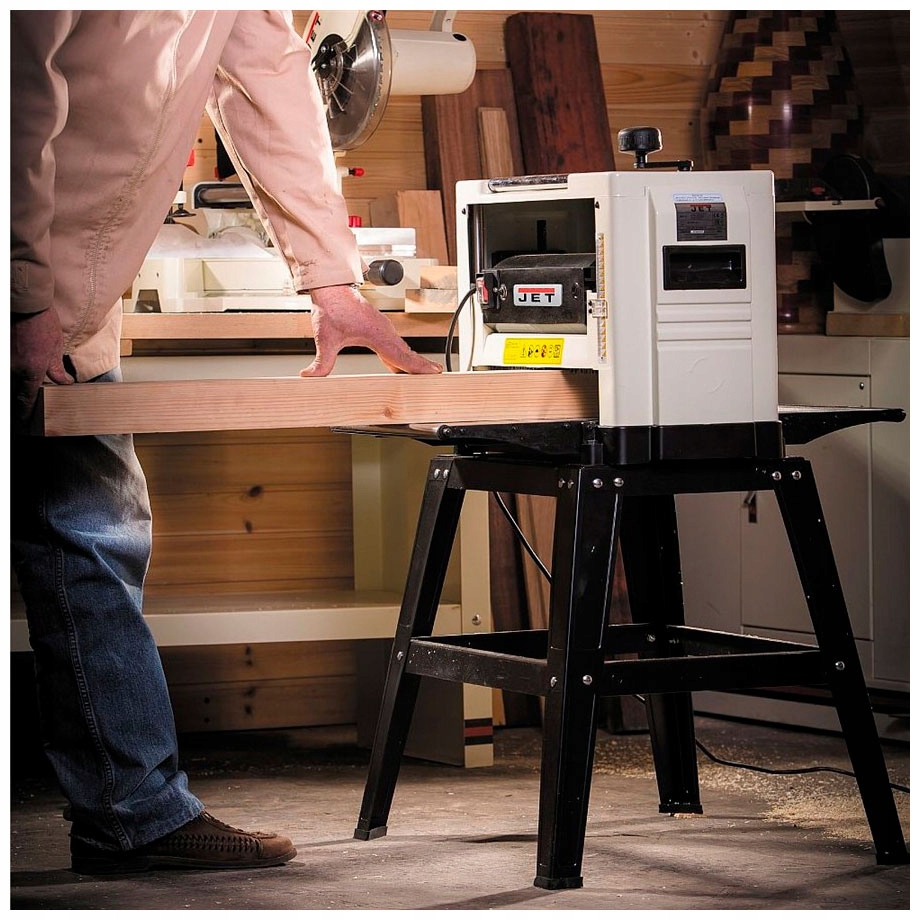 Jet JWP-12-це ефективний і компактний потік з максимальною шириною заготовки 318 мм. Це вважалося головним чином для хобі -додатків, невеликих майстерень для ремесел та столярних справ, і як мобільний пристрій, який легко переносити між будівництвом та іншими робочими місцями.