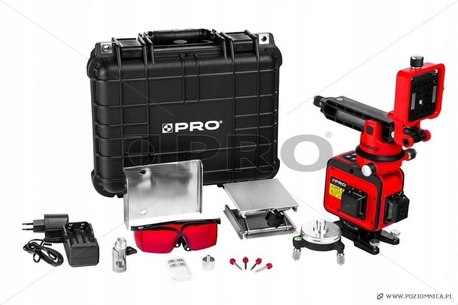 - Багатолінійний лазер LP-360.3D TILER створює три площини на 360°, одну горизонтальну (25 мм заввишки) і дві вертикальні площини, що перетинаються під кутом 90°.